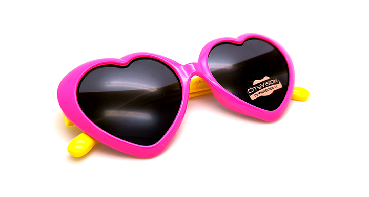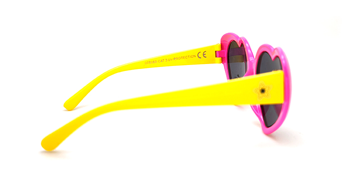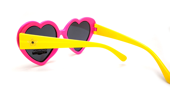 عینک آفتابی دخترانه مدل قلبی سیتی ویژن با طراحی فانتزی با فریم کائوچویی (سرخابی و دسته های زرد)
