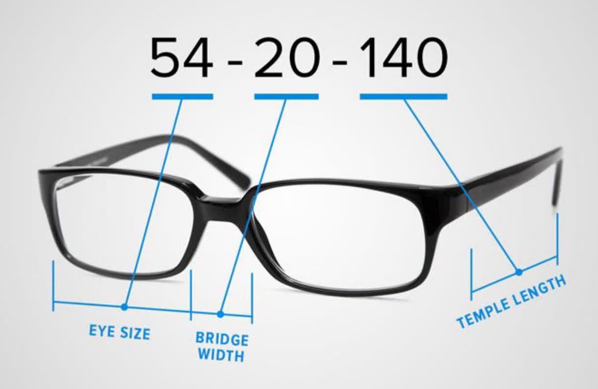 سایز عینک معمولاً از سه عدد تشکیل میشود که داخل دسته عینک نوشته شدهاند. مثلاً: 53-18-140 این اعداد به ترتیب نشاندهنده موارد زیر هستند: