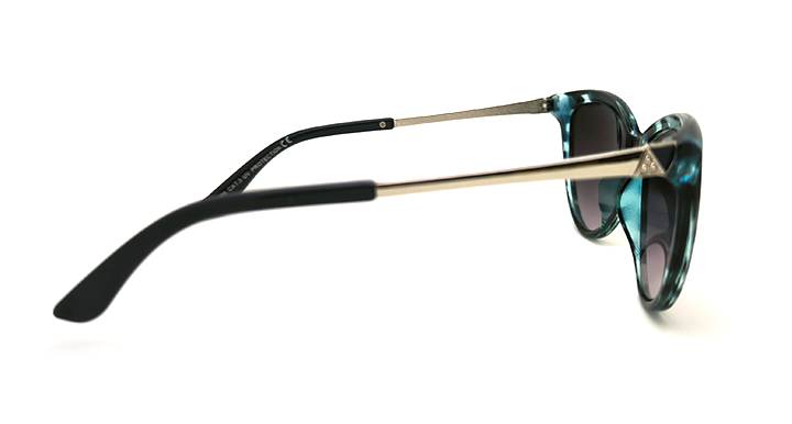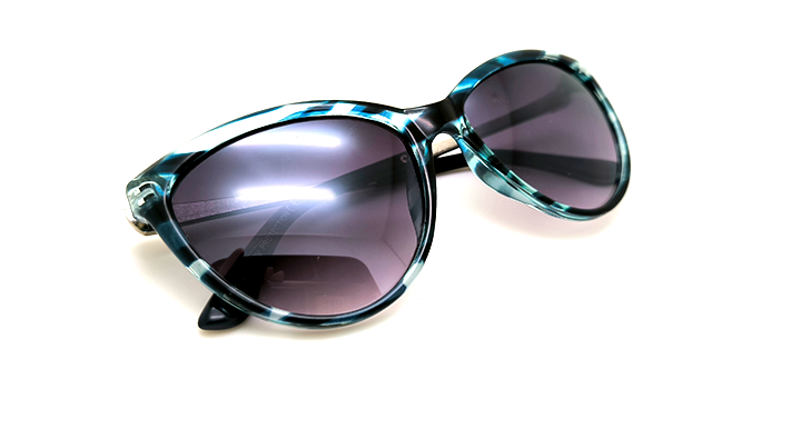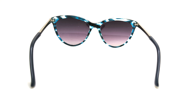 عینک آفتابی زنانه پلاریزه طرح گربه ای کد 025198 با فریم پلنگی آبی و عدسی خاکستری سایه روشن