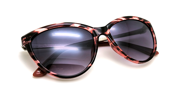 عینک آفتابی زنانه پلاریزه طرح گربه ای کد 025198 با فریم پلنگی شرابی و عدسی خاکستری سایه روشن