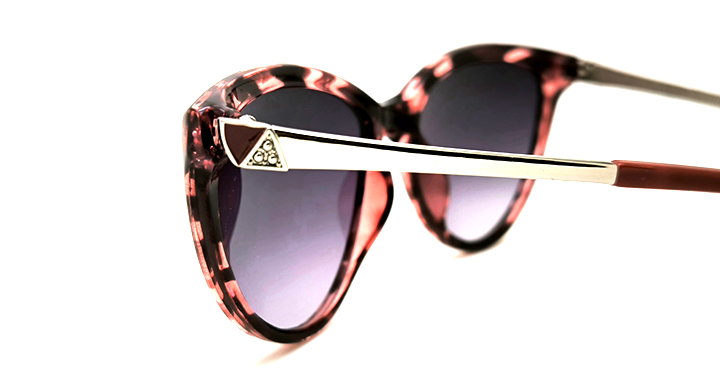 با فریم پلنگی شرابی کائوچویی با دسته های فلزی نقره ای و طراحی بی نظیر مثلثی سنتی در حاشیه