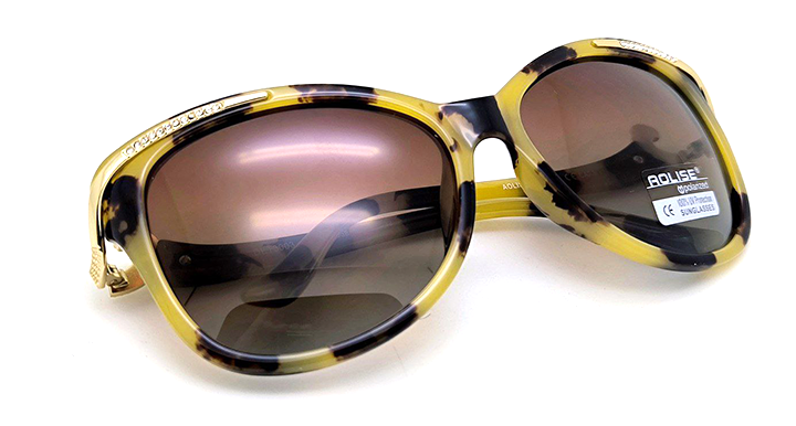 عینک آفتابی زنانه AOLISE با عدسی سایه روشن و طراحی پلنگ نگین دار کائوچویی