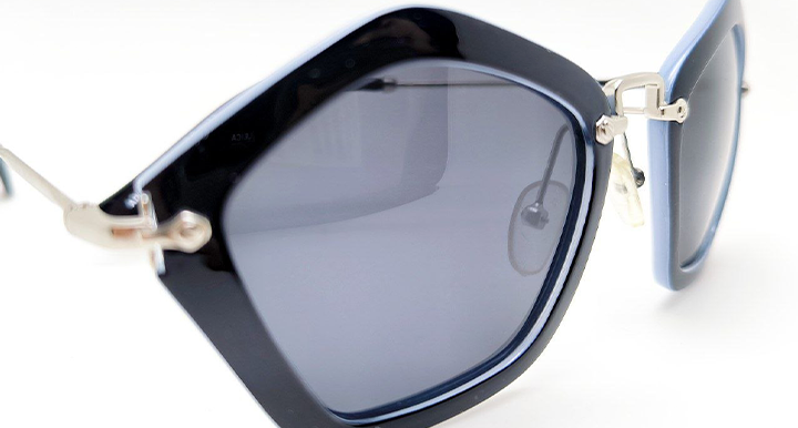 عینک آفتابی زنانه AOLISE مدل پنج ضلعی دورنگ آبی با روکش مشکی براق
