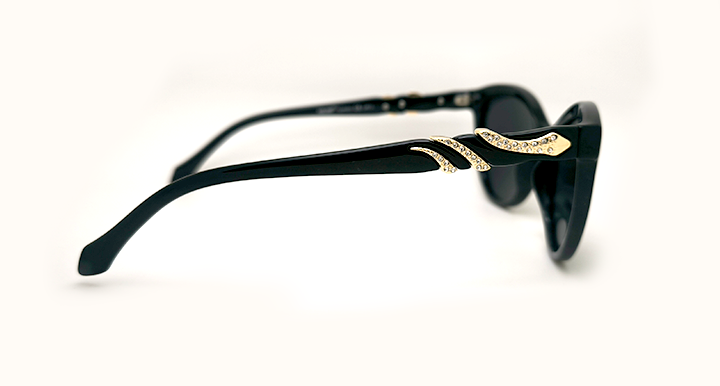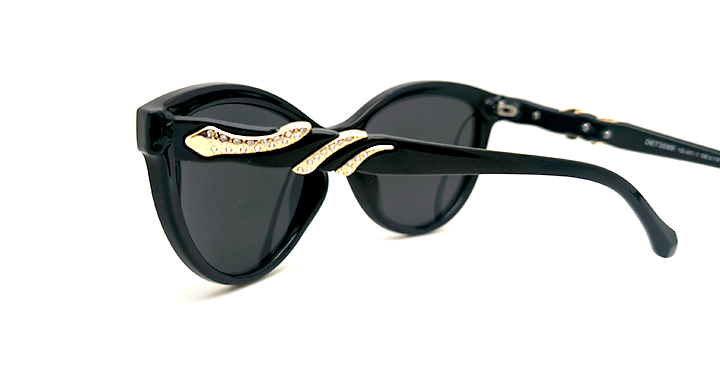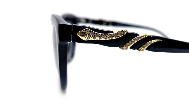 عینک آفتابی زنانه AOLISE پلاریزه طرح روبرتو کاواللی با فریم مشکی براق و طراحی مار نگین دار بر روی دسته ها