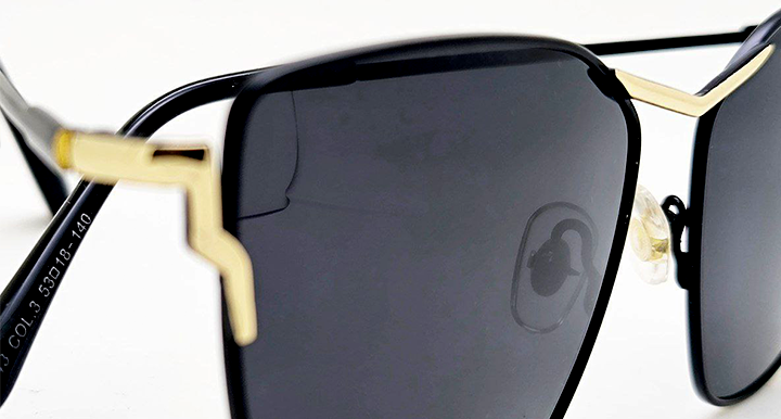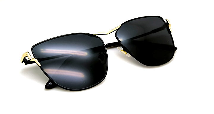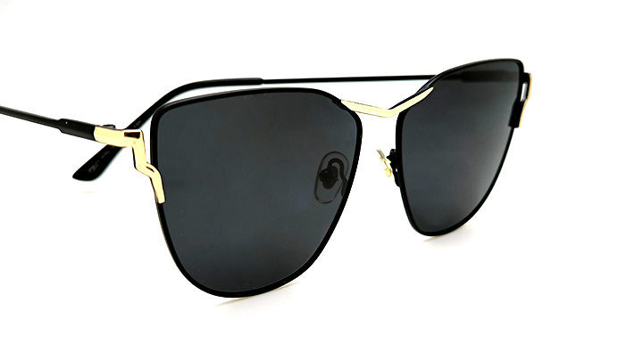 عینک آفتابی (کارازا) CARAZA پلاریزه مشکی با فریم بسیار ظریف مشکی با حاشیه و پل طلایی