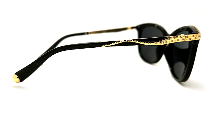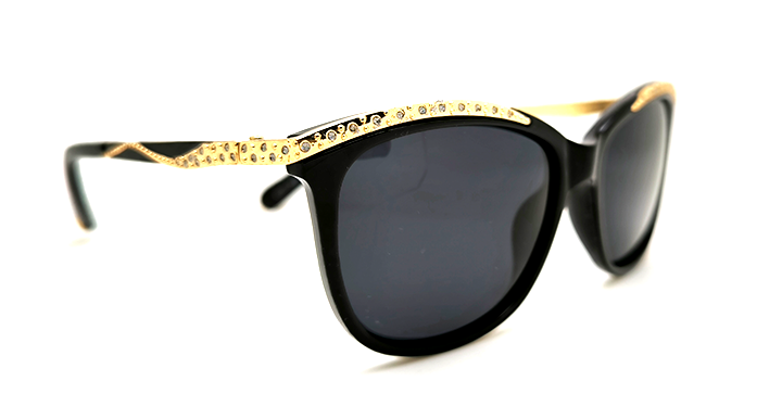 عینک آفتابی زنان کارازا مدل ابرودار نگین دار با فریم مشکی براق