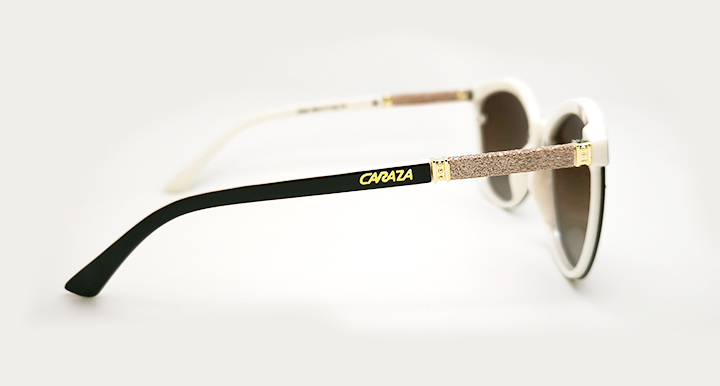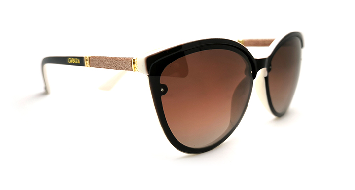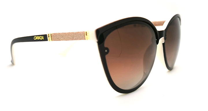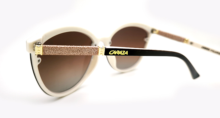 عینک آفتابی زنانه CARAZA مدل گربه ای با فریم کائوچویی شیری و روکش قهوه ای تیره و عدسی هایلایت قهوه ای