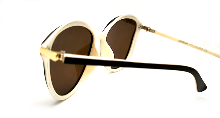 عینک آفتابی زنانه Karaza پلاریزه گربه ای کائوچویی شیری با روکش قهوه ای با حاشیه طلایی