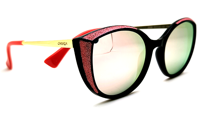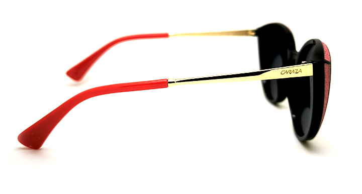 عینک آفتابی زنانه Karaza پلاریزه گربه ای با فریم مشکی و حاشیه اکلیلی و عدسی آینه ای قرمز