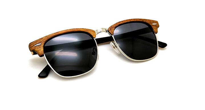 عینک آفتابی کلابمستر برند سیتیویژن با فریم کائوچویی طرح چوب و عدسی خاکستری پلاریزه (با داخل دسته ی مشکی)