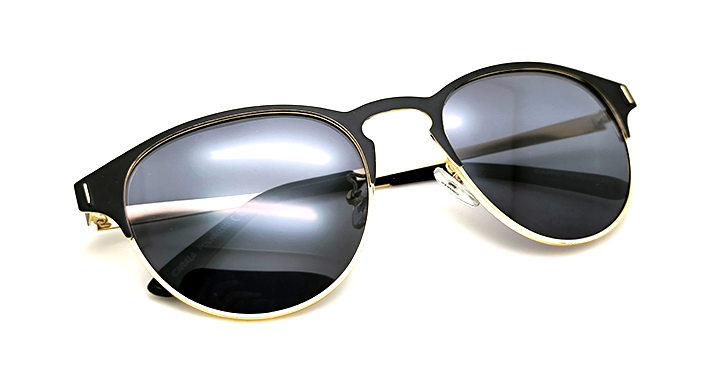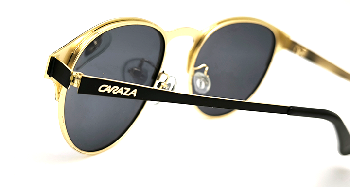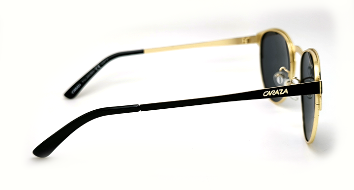 عینک آفتابی کارازا مدل کلابراند کد CA006 با فریم فلزی طلایی با روکش مشکی و عدسی خاکستری پلاریزه