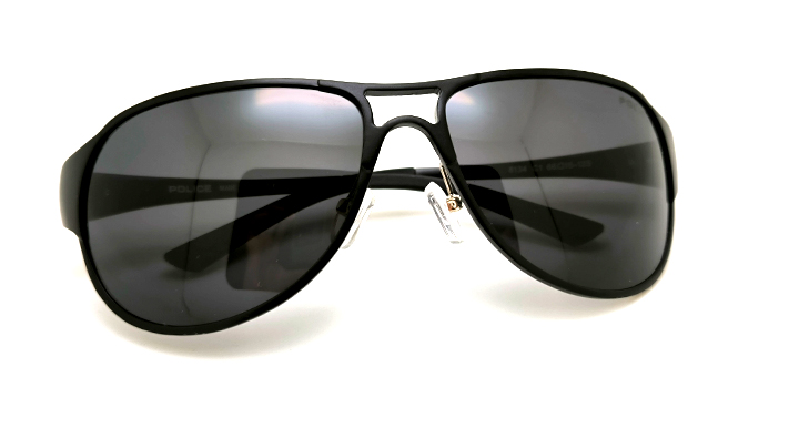 عینک آفتابی مردانه خلبانی پلیس (Police) با فریم مشکی فلزی تمام آلومینیوم با عدسی خاکستری پلاریزه