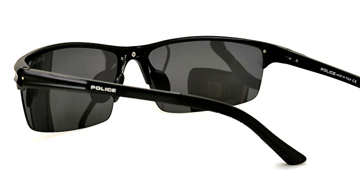 عینک آفتابی مردانه پلیس (Police) نیم فریم مشکی فلزی تمام آلومینیوم با عدسی خاکستری پلاریزه